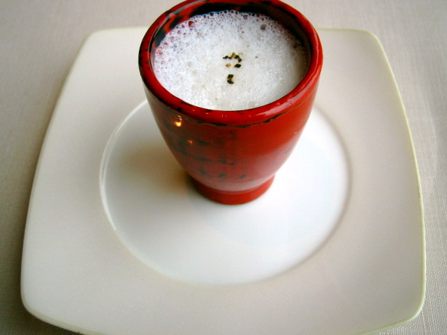 和の漆器?に入ったアスパラガスのスープです。