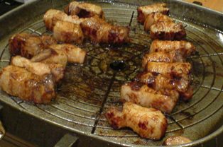 ワインサムギョプサルという焼肉のメニューなのですが、すでに切られているお肉をただ焼くのではありません。