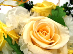 です〜。講師の先生いわく、基礎づくり(花や葉に茎がわりになる針金をつける作業)は「性格」が、アレンジは「センス」が反映されるとのことなのですが、なんとなく自分で「私は性格はずぼらだけど、センスはけっこういいかも〜(自画自賛(^_^;)」と思ったのでした