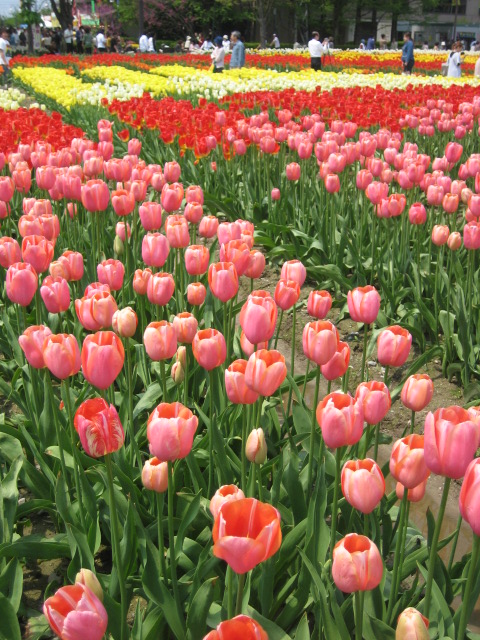 ちょうどチューリップ祭りをやっていて一面に広がった