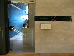 が集中しているのですが、その中でもミッドタウンガーデンに面したガーデンテラスというエリアの2階に「cuisine francaise JJ」はあります。レストランの入口が思っていたより、ずっとシンプルでびっくり