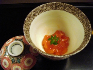 先付は、サーモンとイクラが和えられたもの