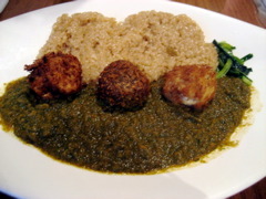 ちなみにこちらは友達が頼んだ、休日メニュー「土日祝だけ植物性グリーンカレー玄米ごはん 10穀入り豆腐コロッケ添え」