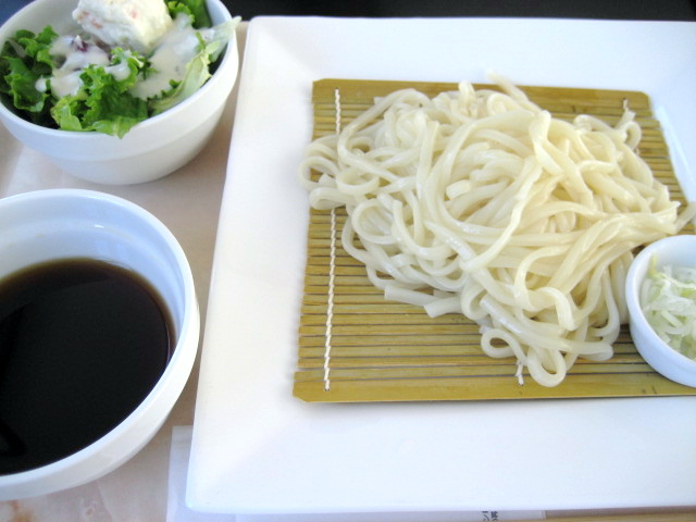 ちなみに私はこの日は食欲があまりなかったので、ランチセットではなく、ざる稲庭うどん(500円)とポテトサラダ(100円)とプチデザート(100円)を頼みました。