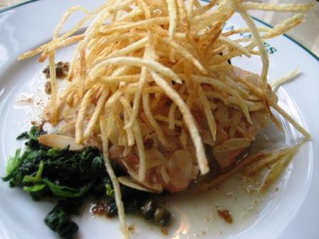「サーモンのパン粉焼き 焦がしバターソース アーモンド風味」