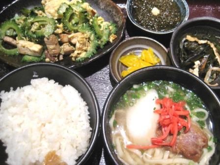私は、ゴーヤちゃんぷるーと半そばがセットになった竹富島定食にしました