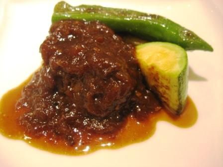 ほほ肉の蒸し煮、ししとう、きぬ茄子、韓国の南瓜、ワインビネガーソースよく煮込まれたお肉はとても柔らかかった