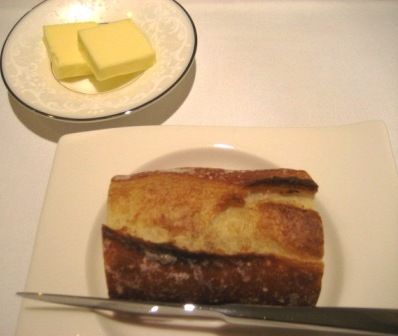 /バゲットかりかりしたバゲットは暖められて出てきます。私の好きなバターをつけて思わず食べすぎちゃう。