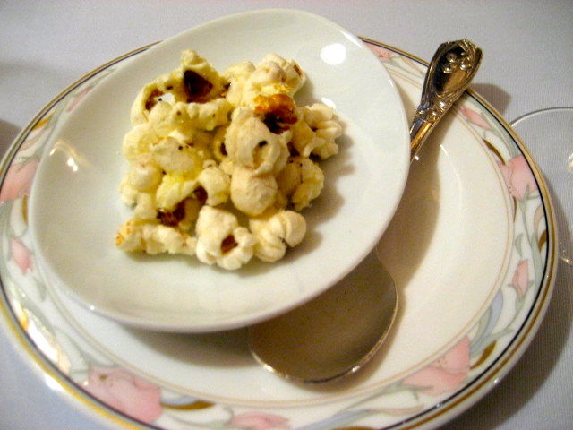 塩味の効いたポップコーンが一緒に出され、クルトン代わりに中に入れて食べられるようになっていました。
