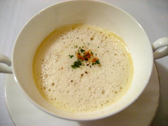 ポタージュも塩味系で、ジャガイモの味をシンプルに引き出していました。