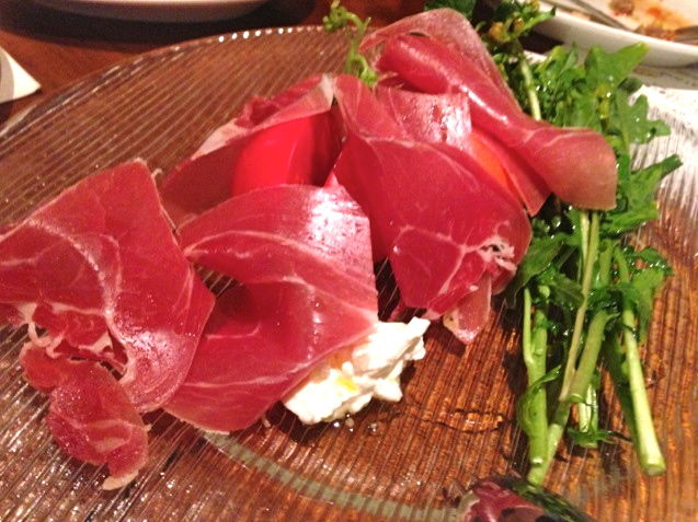 農友園トマトラフとハモンセラーノ高知霧島畑ルッコラサラダとリコッタチーズ