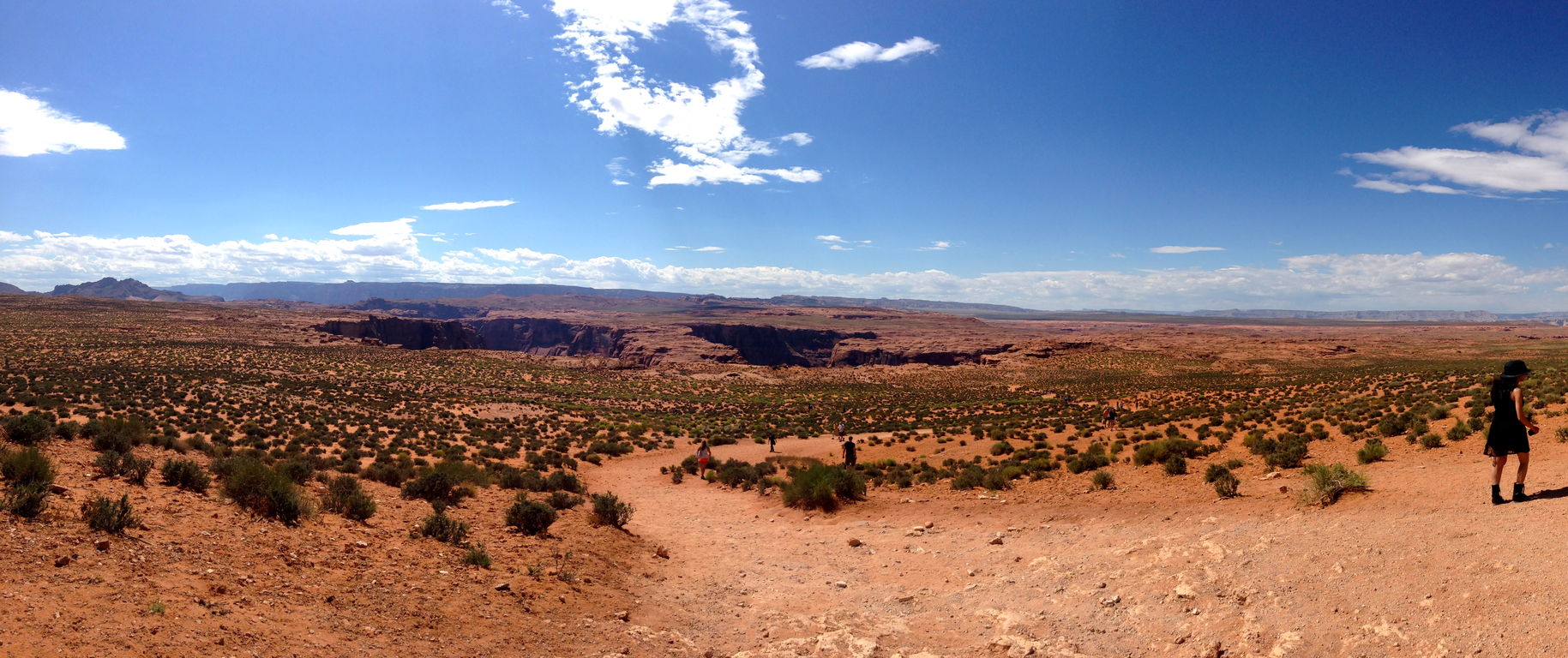 と壮大な風景に目を見張ります。コロラド川が蛇行している場所なのですが(日本でも川が蛇行しているところはありますよね)、何年もかけて岩を浸食し、このような深さ&形に