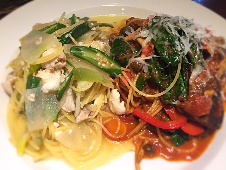 前回はメインがお魚プレートだったので、今回はパスタのロッソ&ビアンコ 2種類の盛り合わせ