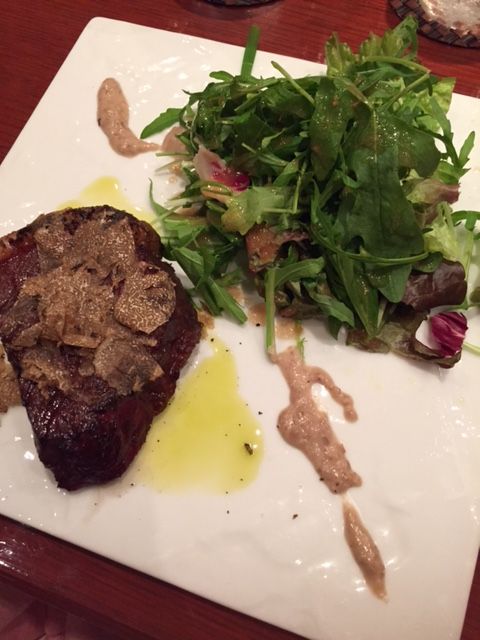 プラスアルファとしてトリュフを一緒に食べるとより一層お肉の味わい深さを感じられるとおすすめされました。口に入れた瞬間に燻製の香りが、そしてお肉を噛むと肉汁が溢れてきます。時間と手間をかけて準備されたお肉、とっても美味しく、お腹は本当にいっぱいなのですが、お肉のおかわりまでしてしまいました。(カットした上でお肉が余った場合には、おかわりが可能だと声掛けしてくれるようです。)