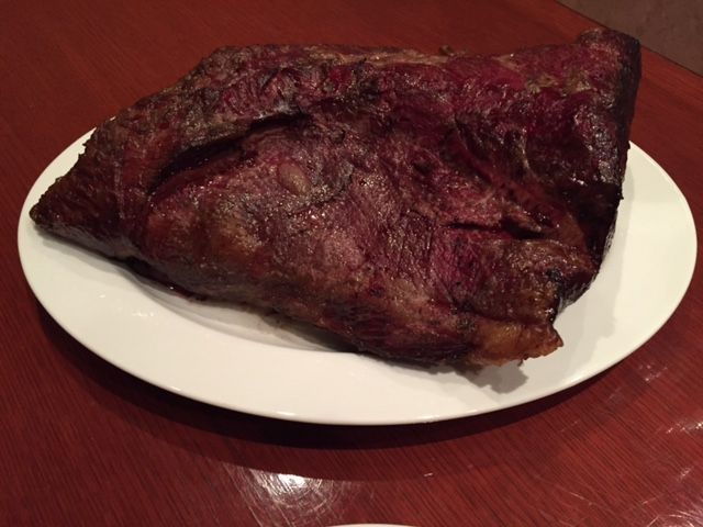 お店にお邪魔してから30分程度が経った、お肉が焼きあがる19時45分を過ぎると、炉窯で2時間じっくり焼かれた約6kgの塊のお肉が店内の人々にお披露目されます。目の前までできあがったばかりのお肉を持ってきてくれ、これからカットすると丁寧に説明してくれるところも嬉しい演出です