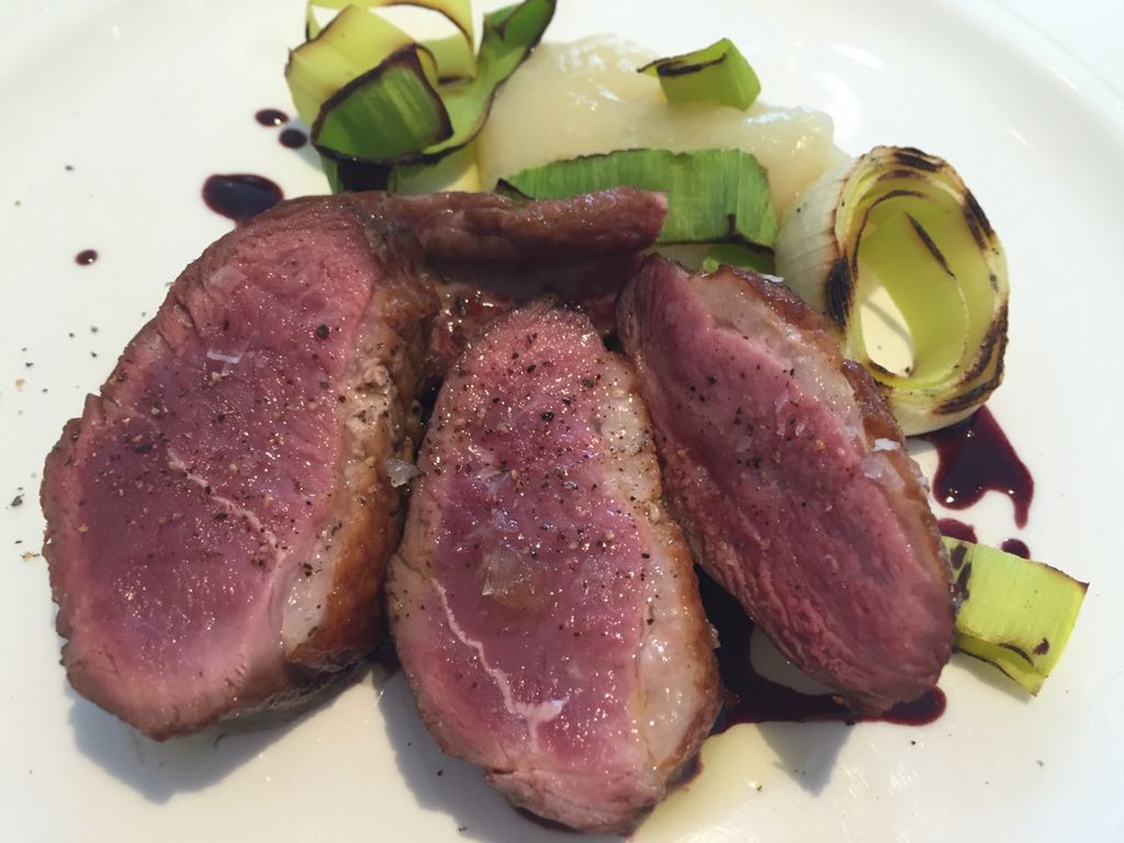 「青森県産鴨胸肉のサルタート 根セロリのピュレとポートワインの甘美なソースを添えて」